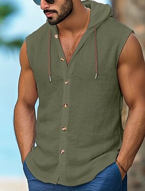 Per uomo Camicia Camicia di lino Camicia casual Camicia con Bottoni Camicie sbottonate Semplice Vacanza Streetwear Nero Bianco Blu marino Marrone Senza Maniche Con Cappuccio Estate Abbigliamento