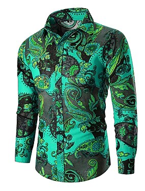 Per uomo Paisley Tribale Camicia Manica Lunga Vintage Moda Cool Streetwear Quotidiano Ferie Primavera & Autunno Colletto Giallo Verde militare Rosso Verde