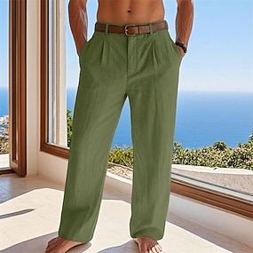 Per uomo Pantaloni di lino Pantaloni Pantaloni estivi Pantaloni da spiaggia A cordoncino Vita elastica Gamba dritta Liscio Comfort Traspirante Informale Giornaliero Per eventi Di tendenza Classico