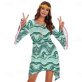 Retrò Vintage Anni '70 Disco Vestito Fascia Set di accessori Manica del polsino svasato Hippie Stampa Costume Per donna Mascherata Feste Festa / Sera Parata dell'Orgoglio Adulti Vestito Altri
