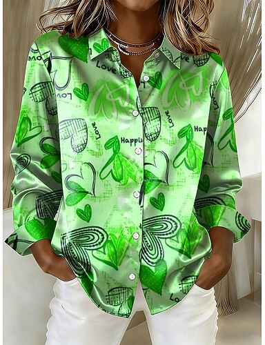 San Valentino Per donna Camicia Cuore Grafico Vintage Elegante Moderno Manica Lunga Colletto a Camicia Top Regolari Quotidiano Ferie Blu Rosso Viola Verde Primavera Inverno