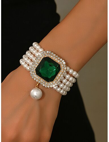 Bracciale da donna con perline di perle e grande ciondolo di cristallo: elegante gioiello da polso con strass per feste, serate e cocktail