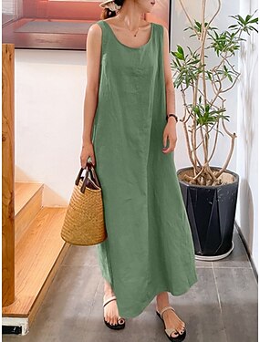 Per donna Abito lungo maxi Finto cotone e lino Abito a Tubino Vestito Casual Moda Essenziale Moderno Quotidiano Vacanza Uscire Vestibilità comoda Semplice Senza Maniche Collo a U Blu Giallo Rosa Rosso