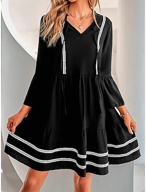abito lungo da donna in finto cotone e lino, abito a trapezio casual da giorno vestibilità ampia tinta unita maniche corte scollo a V blu nero bianco cammello estate primavera autunno
