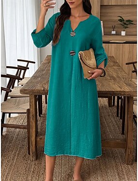 Per donna Abito Midi Finto cotone e lino Abito a trapezio Abito Estivo Casual Quotidiano Vestibilità regolare Semplice Mezza Manica Girocollo Blu Bianco Viola Verde Estate