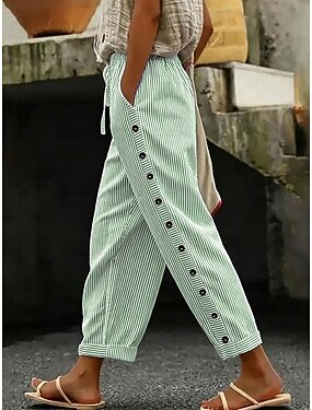Per donna Finto cotone e lino Pantaloni Pantaloni casual Pantaloni Estivi Vacanza Moda Essenziale Lunghezza alla caviglia Misura del girovita medio Floreale Grafico A righe Tasche Laterali Righe