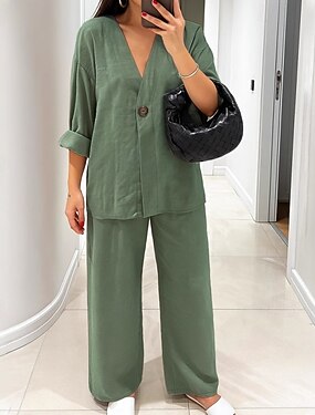 Per donna Camicia Set di biancheria in cotone Set da due pezzi Pantaloni a Gamba Larga Manica Lunga Colletto a Camicia Semplice Elegante Ufficio Lavoro Blu Nero Bianco Estate Vestibilità regolare
