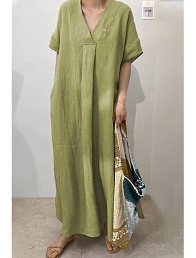 Per donna Abito maxi Finto cotone e lino Abito a trapezio Abito Estivo Casual Quotidiano Vestibilità comoda Semplice Manica 3/4 Scollo a V Bianco Verde Estate Primavera Autunno