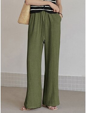 Per donna Finto cotone e lino Pantaloni Estivi Pantaloni Casual Chino Lunghezza intera Naturale Tinta unita Nero Bianco Verde Cachi Primavera, Autunno, Inverno, Estate