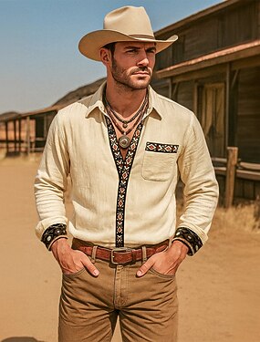 Per uomo Camicia Camicia Estiva Camicia da Spiaggia Camicia Western Camicie retrò Camicia vintage Tinta unica Vacanza Casuale Cachi Manica Lunga Tutte le stagioni Abbigliamento Patchwork