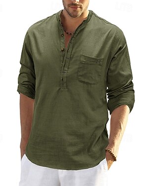Per uomo Camicia Camicia di lino Camicia Estiva Camicia da Spiaggia Tinta unica Vacanza Casuale Nero Bianco Verde Azzurro Manica Lunga Henley Autunno Primavera & Estate Abbigliamento