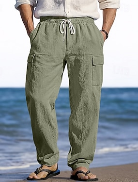 Per uomo Pantaloni Cargo Pantaloni di Lino Pantaloni Estivi Pantaloni casual Coulisse Elastico in vita Multi-tasche Semplice Comodità Traspirante Lunghezza intera Casuale Quotidiano Spiaggia Vacanza