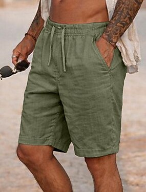 Per uomo Shorts Shorts di Lino Pantaloncini Estivi Shorts da Spiaggia Pantaloncini casual Coulisse Elastico in vita Tinta unica Leggero Traspirante Lunghezza al ginocchio Quotidiano All'aperto