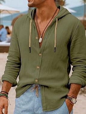 Per uomo Camicia Camicia di lino Abbigliamento da spiaggia Camicia con Bottoni Camicia con cappuccio Semplice Vacanza Casuale Nero Bianco Blu Verde Manica Lunga Con Cappuccio Estate Primavera & Estate