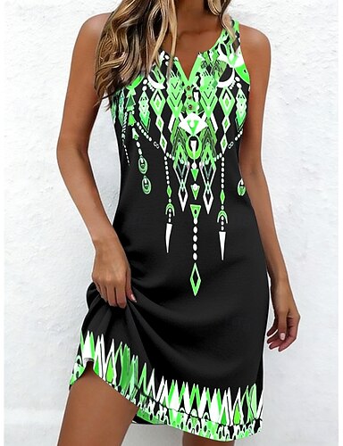 Per donna Mini Abito Abito a Tubino Vestito Estivo Abito Estivo Abito a spalle scoperte Vacanza Casual Quotidiano Ferie Uscire Vestibilità regolare Grafico Tribale Astratto Senza Maniche Scollo a V