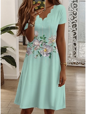Per donna Mini Abito Vestito Estivo Vestito T-Shirt Abito a trapezio Vacanza Casual Spiaggia Spiaggia Uscire Vestibilità regolare Floreale Grafico Manica Corta Scollo a V Blu Giallo Rosa Viola Estate