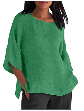 Per donna Camicia Blusa 100% cotone Tinta unica Essenziale Casual Manica 3/4 Girocollo Top Regolari Quotidiano Blu Verde primavera Nero Bianco Verde chiaro Estate
