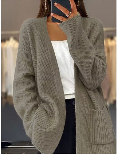 Per donna Felpa Cardigan Informale Morbido Colore puro A coste Apertura anteriore Tasche Lavorato a maglia Manica lunga Top regolari Maglia Esterno Giornaliero Fine settimana Verde Beige Autunno