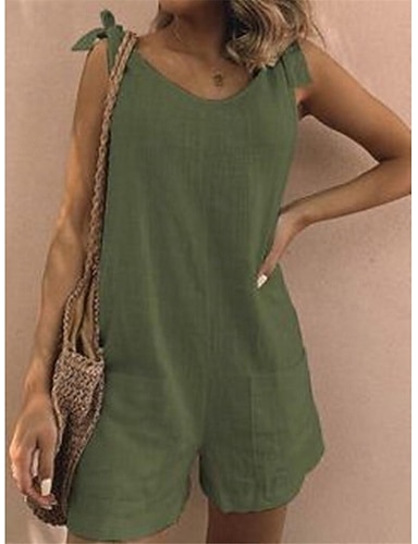 Per donna Normale Tute Attivo Tinta unica Senza maniche A V Tasche Da mare Giornaliero Standard Nero Verde Estate