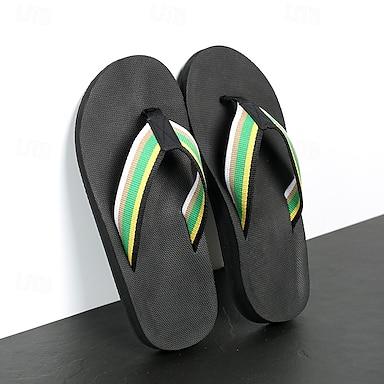 infradito marroni da uomo con cinturino a righe multicolore, stile casual per la spiaggia e l'estate