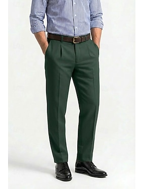 Uomo Cotone Lino Pantaloni Eleganti Pantaloni casual Affari Ufficio & Carriera Formale Leggero Classico Nero Blu marino scuro Verde scuro Primavera & Estate Pantaloni Tinta unica Vestibilità su misura