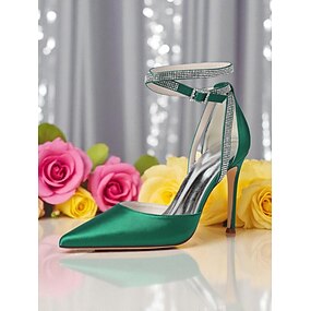 scarpe da damigella d'onore color verde salvia per donna – scarpe da sposa con tacco a blocco e punta affilata e cinturino alla caviglia, eleganti décolleté in raso per la festa nuziale