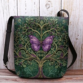 borsa a tracolla da donna in poliestere vellutato, con motivi floreali e ad albero della vita, opzioni multi-design per stili casual e bohémien
