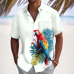 Per uomo Pappagallo Piante Tropicali Fiori Camicia hawaiana estiva Camicia con Bottoni Camicia Aloha Manica Corta Hawaiano Casuale Vacanza Estate Primavera Collo ripiegato Stampa 3D camicie con