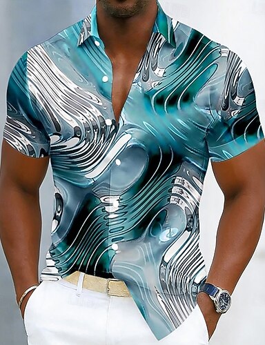 Per uomo Geometrico Onde Camicia con Bottoni Camicia stropicciata Camicia di Seersucker Manica Corta Moda Casual Quotidiano Vacanza al Mare Estate Primavera Collo ripiegato Stampa 3D Camicia con