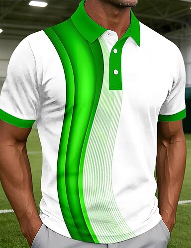 Per uomo Geometrico Polo Manica Corta Magliette polo Bavero Casual Athleisure Stampa 3D Bottoni Primavera & Estate Blu Viola Verde