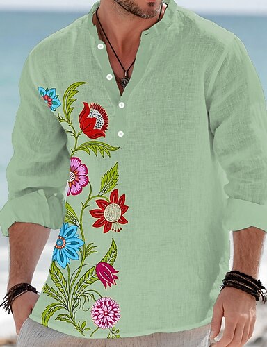Per uomo Stampa Floreale Etnico Fiori Camicia Camicia con Bottoni Maglia Henley Manica Lunga Vintage Retrò Casuale Vacanza Matrimonio Estate Primavera Collo alla coreana Colletto Mao Stampa 3D