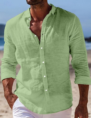 Per uomo Camicia Camicia di lino Camicia Estiva Abbigliamento da spiaggia Camicia con Bottoni Semplice Vacanza Casuale Blu Nero Bianco Rosa Manica Lunga Collo ripiegato Primavera & Estate
