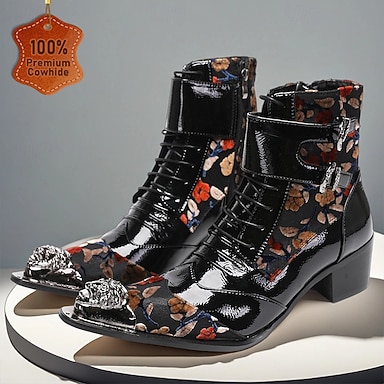 Per uomo Stivali Stivali da biker Scarpe Stampate Retrò Camminata Pelle Vernice Pelle Pieno Fiore Italiana Confortevole Antiscivolo Caldo Stivaletti Mocassino Nero Autunno Inverno