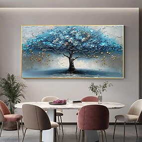 Dipinto A Mano Originale Albero In Fiore Dipinto Ad Olio Su Tela Grande Arte Della Parete Struttura Astratta Fiore Blu Pittura Decorazione Della Parete Soggiorno Decorazione Della Parete Senza Cornice