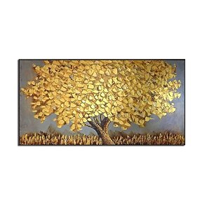 Pittura A Olio Fatta A Mano Dipinta A Mano Arte Della Parete Moderna Astratta Oro Albero Paesaggio Di Grandi Dimensioni Decorazione Della Casa Arredamento Tela Arrotolata Senza Cornice Non Allungata