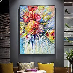 dipinto a olio fatto a mano su tela, decorazione da parete, fiori astratti per la casa, dipinto appeso su telaio teso/dipinto arrotolato senza cornice