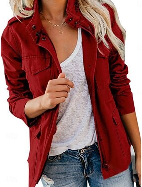 Per donna Giacca Camicia Blazer di velluto Confortevole Tasca Casual Semplice Vacanza Uscire Weekend Regolare Collo alla coreana Vestibilità regolare Manica Lunga Capispalla Vino Verde scuro Fucsia