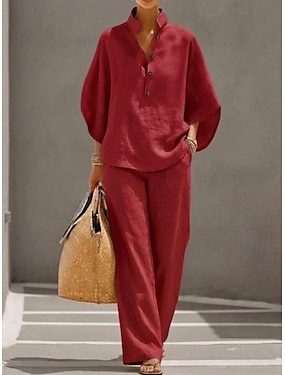 Per donna Set di Pantaloni Bolero Top Finto cotone e lino Manica 3/4 Scollo a V Semplice Moda Streetwear Casuale Quotidiano All'aperto Bianco Giallo Vino Estate Vestibilità comoda