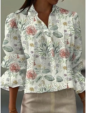 Camicia da donna in lino simile traspirante leggera grafica floreale elegante bohemia vintage a maniche lunghe colletto top regolari lavoro quotidiano vacanza arricciatura blu bianco rosa arancione