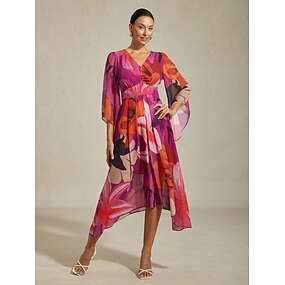 Per donna Abito Lungo Maxi Abito Vestito in Chiffon Abito a trapezio Elegante Formale Quotidiano Feste Ospite di nozze Vestibilità regolare Floreale Manica Lunga Scollo a V Viola Fucsia Arancione