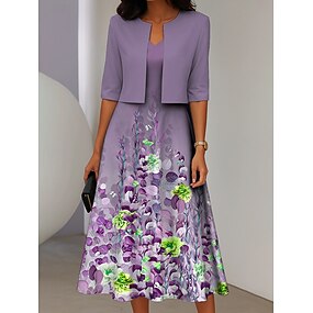 Set di abiti da donna a due pezzi abito midi con giacca abito elegante a linea maniche a ¾ casual semi formale stampa floreale ombre scollo a V data rosa blu viola vestibilità regolare
