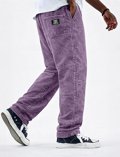 Per uomo Pantaloni casual 100% cotone Pantaloni Larghi Coulisse Elastico in vita Gamba Dritta Semplice Comodità Confortevole Lunghezza intera Quotidiano All'aperto Vacanza Vacanza Moda Blu Nero