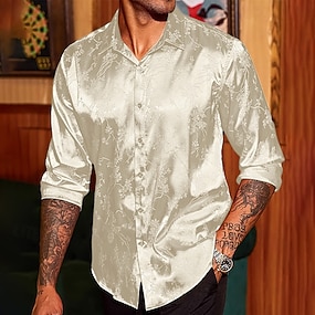 Per uomo Camicia Camicia in raso Camicia casual Camicia con Bottoni Floreale Matrimonio Vacanza Rosso Verde Beige Manica Lunga Colletto Inverno Primavera & Estate Abbigliamento