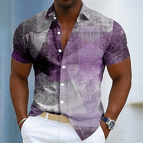 Per uomo Illusione ottica Motivo Geometrico Camicia Camicia con Bottoni Manica Corta Moda Streetwear Designer Quotidiano All'aperto Estate Primavera Collo ripiegato Stampato Argento Rosa Viola Oro