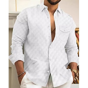 Per uomo Camicia Camicia Estiva Camicia casual Camicia da Spiaggia Camicia con Bottoni Nero Bianco Manica Lunga Tinta unica Bavero Casuale Quotidiano Paillettes Abbigliamento Moda Casual Di tendenza