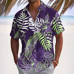 Per uomo Auto Camicia Camicia hawaiana Camicia Aloha Camicia Collo ripiegabile Di tendenza Originale Informale Esterno Strada Informale Giallo Rosso Viola S M L