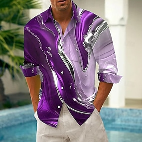 Per uomo Marmo Arte liquida astratta Camicia Camicia con Bottoni Manica Lunga Moda Casual All'aperto Abbigliamento Quotidiano Primavera Autunno Collo ripiegato Stampa 3D Camicia tipo lino Blu Viola