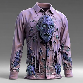 Camicia da uomo horror zombi a maniche lunghe stile punk gotico scuro button up outdoor vacanze estive e primaverili a collo aperto stampa 3D camicie rosa blu viola verdi