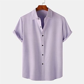 Per uomo Camicia Camicia Estiva Camicia casual Camicia con Bottoni Camicia di cotone Semplice Spiaggia Vacanza Nero Rosa Azzurro cielo Viola Manica Corta Collo ripiegato Estate Abbigliamento