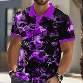 Per uomo Marmo Polo Manica Corta Magliette polo Bavero Casual Athleisure Abbigliamento quotidiano Stampa 3D Bottoni Primavera & Estate Viola Nero